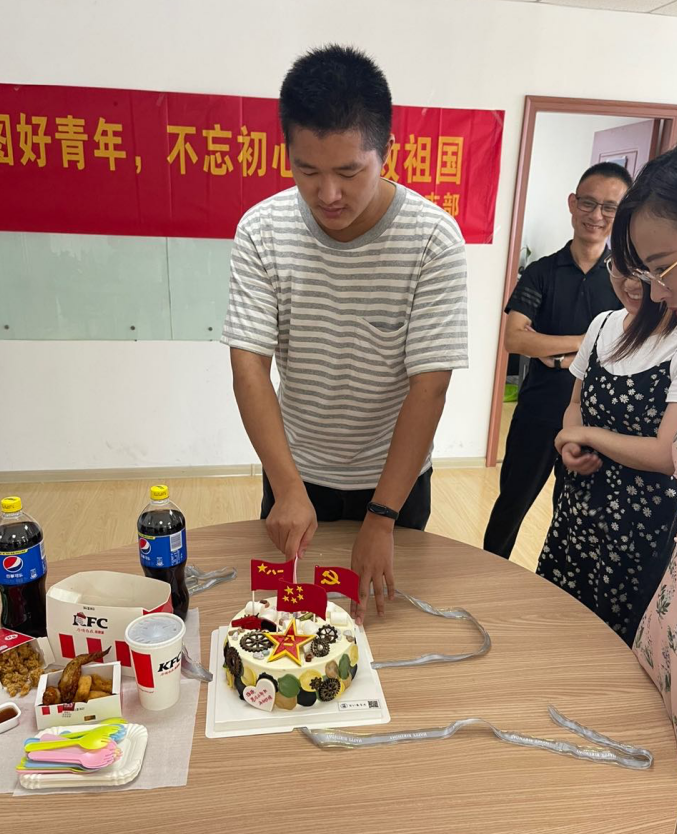 楊揚(yáng)性格開朗,一直是公司同事心中的“智多星、歡樂果”,同時(shí)也是一名名副其實(shí)的“小吃貨”,支部聯(lián)合工會(huì)委員會(huì)職工代表,提前為他的歡送會(huì)準(zhǔn)備了他愛吃的肯德基、小零食、“快樂肥宅水”和蛋糕。