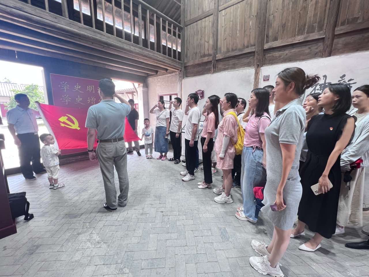 在白茆鎮(zhèn)紅色教育基地紀(jì)念館里,中共安徽云圖支部和中共安徽商貿(mào)職業(yè)技術(shù)學(xué)院信息與人工智能學(xué)院黨總支新老黨員齊聚,面對黨旗重溫入黨誓詞,感悟初心使命,強(qiáng)化責(zé)任擔(dān)當(dāng)。