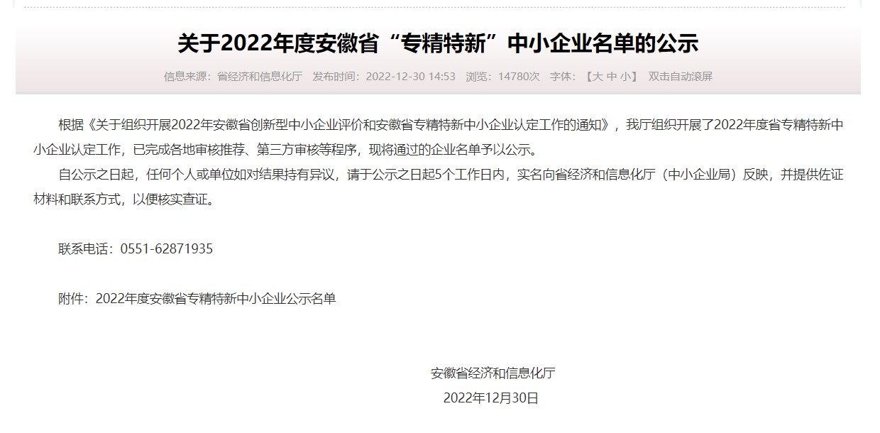 【云圖頭條】熱烈祝賀安徽云圖通過安徽省“專精特新”中小企業(yè)