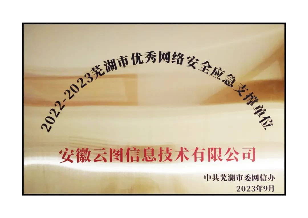 云圖頭條 | 榮獲“蕪湖市優(yōu)秀網(wǎng)絡(luò)安全應(yīng)急支撐單位”稱號